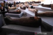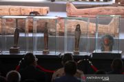 Sejumlah peti mati dan artefak kuno terlihat di situs penemuan peti mati kayu berwarna-warni di Provinsi Giza, Mesir, Sabtu (14/11/2020). Kementerian Pariwisata dan Kepurbakalaan Mesir pada Sabtu (14/11) memamerkan 100 peti mati kuno yang baru ditemukan di Provinsi Giza dekat ibu kota Kairo. ANTARA FOTO/Xinhua/Ahmed Gomaa/pras.