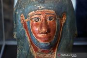 Sejumlah peti mati kayu kuno berwana-warni terlihat di situs penemuannya di Provinsi Giza, Mesir, Sabtu (14/11/2020). Kementerian Pariwisata dan Kepurbakalaan Mesir pada Sabtu (14/11) memamerkan 100 peti mati kuno yang baru ditemukan di Provinsi Giza dekat ibu kota Kairo. ANTARA FOTO/Xinhua/Ahmed Gomaa/pras.