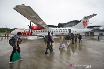 Pesawat komersial Wings Air asal Batam tiba di Bandara Raden Sadjad, Ranai, Kabupaten Natuna, Kepulauan Riau, Selasa (17/11/2020). Selama masa pandemi COVID-19 hanya ada dua maskapai penerbangan yang melayani penumpang di bandara tersebut, antara lain Wings Air dengan jadwal sekali dalam sehari pada Senin hingga Sabtu dan Sriwijaya Air sekali dalam seminggu setiap Senin, dengan rute dari dan ke Bandara Hang Nadim Batam, Kepri. ANTARA FOTO/Aditya Pradana Putra/pras.