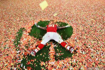 Pemain Kansas City Chiefs Derrick Nnadi melakukan selebrasi setelah timnya menjuarai Super Bowl usai mengalahkan San Francisco 49ers , di Stadion Hard Rock, Miami, Florida, Amerika Serikat, 2 February 2020. ANTARA FOTO/Arsip Foto Reuters-Shannon Stapleton/hp.