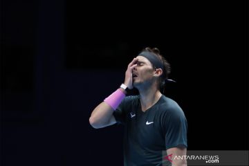Petenis Rafael Nadal asal Spanyol bereaksi usai gagal mengembalikan bola ke arah lawannya petenis Daniil Medvedev asal Rusia pada pertandingan semifinals kejuaraan ATP Finals di Arena O2, London, Inggris, Minggu (22/11/2020) dini hari. Rafael Nadal gagal melaju ke babak finas usai kalah dari Daniil Medvedev dalam tiga set 3-6, 7-6, 6-3. ANTARA FOTO/Action Images/Paul Childs/via REUTERS/wsj.