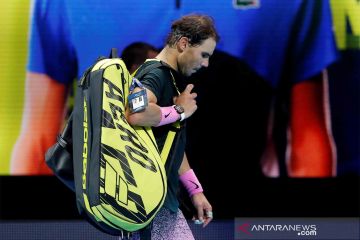 Petenis Rafael Nadal asal Spanyol berjalan usai bertanding melawan petenis Daniil Medvedev asal Rusia pada pertandingan semifinals kejuaraan ATP Finals di Arena O2, London, Inggris, Minggu (22/11/2020) dini hari. Rafael Nadal gagal melaju ke babak finas usai kalah dari Daniil Medvedev dalam tiga set 3-6, 7-6, 6-3. ANTARA FOTO/Action Images/Paul Childs/via REUTERS/wsj.