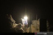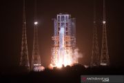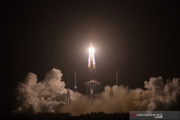 Roket Long March-5, yang membawa wahana antariksa Chang'e-5, meluncur dari Situs Peluncuran Wahana Antariksa Wenchang, di pesisir provinsi pulau Hainan, China selatan, Selasa (24/11/2020). China meluncurkan wahana antariksa untuk mengumpulkan dan membawa pulang sampel dari Bulan, upaya pertama negara itu untuk mengambil sampel dari objek luar angkasa. ANTARA FOTO/Xinhua-Jin Liwang/hp.