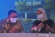 Kepala Staf Kepresidenan Moeldoko (kiri) menyimak paparan Kepala Balai Pengawasan Obat dan Makanan (BPOM) Penny Kusumastuti (kanan) saat peletakan batu pertama pembangunan pabrik vaksin COVID-19 di Kawasan Modern Industri Cikande, Serang, Banten, Selasa (24/11/2020). Pembangunan pabrik di bawah bendera PT Jakarta Biopharmaceutical Industry dengan biaya Rp500 miliar tersebut mulai akhir tahun 2021 diharapkan sudah bisa berproduksi dengan kapasitas 150 juta vaksin per tahun untuk memenuhi kebutuhan dalam negeri dan sebagian untuk diekspor. ANTARA FOTO/Asep Fathulrahman/pras.