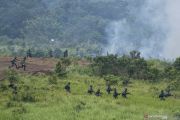 Prajurit TNI AD bergerak maju untuk melancarkan serangan ke arah daerah musuh saat puncak Latihan Antar Kecabangan TNI AD Kartika Yudha Tahun 2020 di Pusat Latihan Tempur (Puslatpur) TNI AD Baturaja Timur, Ogan Komering Ulu (OKU), Sumatera Selatan, Kamis (26/11/2020). ANTARA FOTO/Nova Wahyudi/wsj.