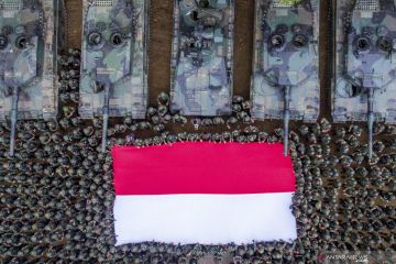 Prajurit TNI AD mengibarkan bendera merah putih usai mengikuti puncak Latihan Antar Kecabangan TNI AD Kartika Yudha Tahun 2020, di Pusat Latihan Tempur (Puslatpur) TNI AD Baturaja Timur, Ogan Komering Ulu (OKU), Sumatera Selatan, Kamis (26/11/2020). ANTARA FOTO/Nova Wahyudi/wsj.