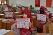 Sejumlah murid memperlihatkan poster sosialisasi pencegahan COVID-19 sebelum pembagian masker di salah satu Sekolah Dasar Negeri, Desa Garut, Kecamatan Darul Imara, Kabupaten Aceh Besar, Aceh, Selasa (2/12/2020). Pemerintah Aceh meluncurkan Gerakan Masker Sekolah (Gemas) dengan menyasar sebanyak 1,08 juta pelajar dari 6.783 sekolah di Aceh dengan melibatkan 117.712 guru untuk memastikan penerapan protokol kesehatan dengan benar di sekolah guna mencegah penyebaran COVID-19 menjelang pemberlakukan belajar tatap muka secara normal. ANTARA FOTO/Ampelsa/hp.