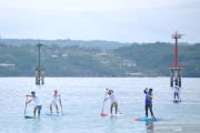 Peserta mengendalikan papan 'Stand Up Paddle' saat mengikuti kegiatan 'Stand Up for Bali' di kawasan Pantai Kelan, Badung, Bali, Minggu (13/12/2020). Kegiatan 'fun paddle' sejauh empat kilometer yang diikuti oleh puluhan peserta dari berbagai daerah tersebut dilakukan sebagai upaya untuk mempromosikan dan mendukung pemulihan pariwisata Bali yang terdampak pandemi COVID-19. ANTARA FOTO/Fikri Yusuf/wsj.
