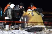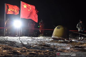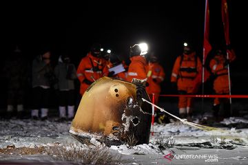 Kapsul pembawa pulang (return capsule) wahana antariksa China, Chang'e-5, mendarat di wilayah Siziwang, Daerah Otonom Mongolia Dalam, China bagian utara (17/12/2020). Kapsul pembawa pulang wahana antariksa China, Chang'e-5, mendarat di Bumi pada Kamis (17/12) dini hari, membawa sampel Bulan pertama yang diambil oleh negara itu sekaligus sampel Bulan terbaru di dunia selama lebih dari 40 tahun. ANTARA/Xinhua/Ren Junchuan/aa.