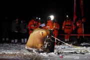 Sejumlah petugas bekerja di lokasi pendaratan kapsul pembawa pulang (return capsule) wahana antariksa China, Chang'e-5, di wilayah Siziwang, Daerah Otonom Mongolia Dalam, China bagian utara (17/12/2020). Kapsul pembawa pulang wahana antariksa China, Chang'e-5, mendarat di Bumi pada Kamis (17/12) dini hari, membawa sampel Bulan pertama yang diambil oleh negara itu sekaligus sampel Bulan terbaru di dunia selama lebih dari 40 tahun. ANTARA/Xinhua/Ren Junchuan/aa.