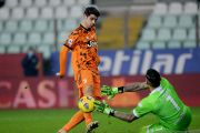 Pesepak bola Juventus Alvaro Morata (kiri) menendang bola ke gawang Parma yang dijaga penjaga gawang Luigi Sepe (kiri) dalam laga pekan ke-13 Liga Italia, di Stadion Ennio Tardini, Parma, Italia, Sabtu (19/12/2020). Juventus berhasil megalahkan Parma 4-0 dan Ronaldo menyumbang dua gol dalam pertandingan ini. ANTARA FOTO/Reuters-Jennifer Lorenzini/hp.