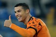 Pesepak bola Juventus Cristiano Ronaldo mengacungkan jempolnya saat akan meningalkan lapangan ketika bertanding melawan Parma dalam laga pekan ke-13 Liga Italia, di Stadion Ennio Tardini, Parma, Italia, Sabtu (19/12/2020). Juventus berhasil megalahkan Parma 4-0 dan Ronaldo menyumbang dua gol dalam pertandingan ini. ANTARA FOTO/Reuters-Jennifer Lorenzini/hp.