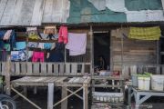 Penyintas bencana berada di hunian sementara yang dibangun dari sisa-sisa reruntuhan rumahnya akibat gempa dan tsunami di Desa Tompe, Kabupaten Donggala, Sulawesi Tengah, Minggu (20/12/2020). Lebih dari 300 kepala keluarga di tempat itu tetap bertahan di hunian sementara yang kerap digenangi banjir rob karena hingga dua tahun pascabencana belum memiliki hunian tetap. ANTARA FOTO/Basri Marzuki/foc.