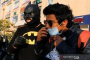 Seorang pria berkostum Batman, Bassem Raaof membagikan masker wajah kepada warga selama musim Natal, di tengah pandemi penyakit virus Corona (COVID-19) di Kairo, Mesir, Kamis (17/12/2020). ANTARA FOTO/REUTERS /Mohamed Abd El Ghany/rwa.