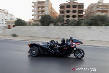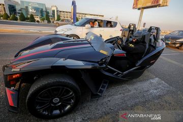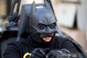 Seorang pria berkostum Batman, Bassem Raaof mengendarai replika "Batmobile" di sekitar lingkungannya untuk membagikan masker wajah kepada penduduk selama musim Natal, di tengah pandemi penyakit virus Corona (COVID-19) di Kairo, Mesir, Kamis (17/12/2020). ANTARA FOTO/REUTERS /Mohamed Abd El Ghany/rwa.