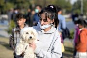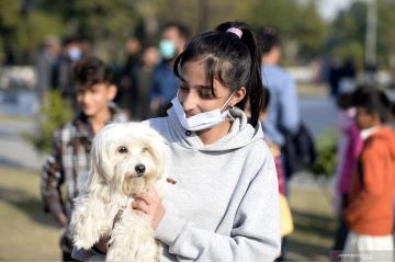 Seorang anak perempuan menggendong anjingnya dalam acara All Breed Dog Show di Rawalpindi, Provinsi Punjab, Pakistan, Minggu (20/12/2020). All Breed Dog Show diadakan pada Minggu (20/12) dan menarik banyak peserta untuk memamerkan anjing mereka. ANTARA FOTO/Xinhua-Ahmad Kamal/hp.