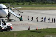 Penumpang tiba di Bandara Banyuwangi, Jawa Timur, Kamis (24/12/2020). PT Angkasa Pura II mencatat pada H-7 sampai dengan H-2 arus libur Natal dan tahun baru 2021, penumpang di Bandara Banyuwangi sebanyak 2.375 atau turun dibandingkan tahun 2019 sebanyak 4.938 penumpang. ANTARA FOTO/Budi Candra Setya/foc.