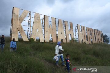 Pengunjung berjalan di kawasan Kawah Wurung, Kecamatan Ijen, Bondowoso, Jawa Timur, Kamis (24/12/2020). Kawasan Kawah Wurung yang berada di kaldera Gunung Ijen menjadi tujuan wisata warga untuk mengisi libur Natal 2020. ANTARA FOTO/Seno/aww.