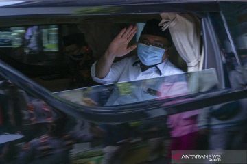 Menteri Agama Yaqut Cholil Qoumas (kanan) menyapa warga usai kunjungan kerja di Kabupaten Batang, Jawa Tengah, Sabtu (26/12/2020). Kunjungan kerja Menteri Agama di sejumlah daerah di Jawa Tengah tersebut dalam rangka silaturahmi dengan beberapa ulama. ANTARA FOTO/Harviyan Perdana Putra/aww.
