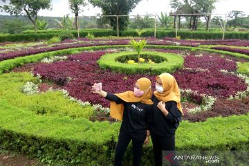Pengunjung berfoto di Agro Wisata Tamansuruh, Banyuwangi, Jawa Timur, Selasa (29/12/2020). Pemerintah Daerah setempat akan menutup seluruh tempat wisata mulai 31 Desember hingga 3 Januari 2021, sebagai upaya pencegahan penyebaran COVID-19 pada masa libur menyambut Tahun Baru 2021. ANTARA FOTO/Budi Candra Setya/pras.