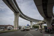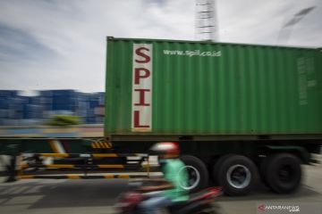Truk peti kemas melintas di kawasan Tanjung Priok, Jakarta Utara, Sabtu (2/1/2021). Ketua Umum Asosiasi Logistik Indonesia (ALI) Zaldi Ilham Masita mengatakan kelangkaan peti kemas terjadi di seluruh dunia karena belum pulihnya perdagangan dunia akibat dari pandemi COVID-19 dan belum berimbangnya aliran peti kemas secara internasional. ANTARA FOTO/Dhemas Reviyanto/wsj.