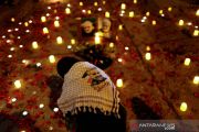 Seseorang menyalakan lilin di dekat foto komandan militer senior Iran Jenderal Qassem Soleimani dan komandan milisi Irak Abu Mahdi al-Muhandis pada peringatan pertama pembunuhan mereka dalam serangan AS, di bandara Baghdad, Irak (2/1/2021). ANTARA FOTO/REUTERS /Thaier Al-Sudani/aww.