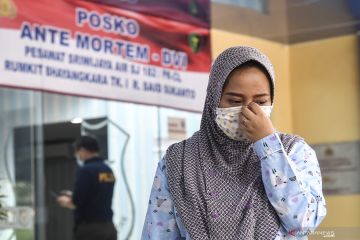 Keluarga Co Pilot pesawat Sriwijaya Air SJ 182 Diego Enrile Mamahit berada di lokasi posko ante mortem guna keperluan identifikasi di RS Polri, Jakarta, Minggu (10/1/2021). Polisi telah membuka Posko Ante Mortem - DVI untuk menerima data penumpang dan kru pesawat Sriwijaya Air SJ 182 dari keluarga di RS Polri Kramat Jati dengan nomor Hotline di 08125039292. ANTARA FOTO/Muhammad Adimaja/wsj.