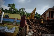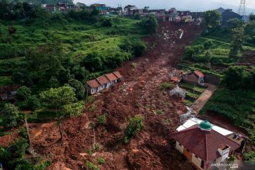 Foto udara bencana tanah longsor di Cimanggung, Kabupaten Sumedang, Jawa Barat, Selasa (12/1/2021). Tim SAR gabungan masih mencari sedikitnya 24 korban hilang yang telah terdata akibat bencana tanah longsor yang terjadi pada Sabtu (9/1) lalu. ANTARA FOTO/Raisan Al Farisi/hp.