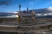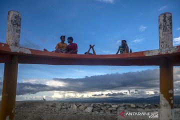 Sejumlah anak bermain di bekas tugu yang telah rusak di Kampung Lere, Palu, Sulawesi Tengah, Rabu (13/1/2021). Karena kurangnya fasilitas bermain di wilayah itu, anak-anak terpaksa memanfaatkan bekas tugu tersebut sebagai sarana bermain meskipun membahayakan keselamatan. ANTARA FOTO/Basri Marzuki/rwa.