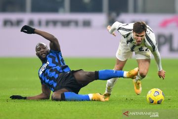 Pesepak bola Inter Milan Romelu Lukaku (kiri) berebut bola dengan pesepak bola Juventus Federico Chiesa (kanan) dalam laga pekan ke-18 Liga Italia, di Stadion San Siro, Milan, Italia, Minggu (17/1/2021). Inter MIlan berhasil memgalahkan Juventus 2-0. ANTARA FOTO/Reuters-Daniele Mascolo/hp.