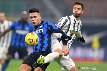 Pesepak bola Juventus Danilo (kanan) berebut bola pesepak bola Inter Milan Lautaro Martinez dalam laga pekan ke-18 Liga Italia, di Stadion San Siro, Milan, Italia, Minggu (17/1/2021). Inter MIlan berhasil memgalahkan Juventus 2-0. ANTARA FOTO/Reuters-Daniele Mascolo/hp.
