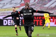 Pemain Bayer Leverkusen Moussa Diaby merayakan gol pertama saat laga Bundesliga melawan Borussia Dortmund di BayArena, Leverkusen, Jerman (19/1/2021). Bayer Leverkusen menang dengan skor 2-1. ANTARA FOTO/Pool via REUTERS/Martin Meissner/aww.