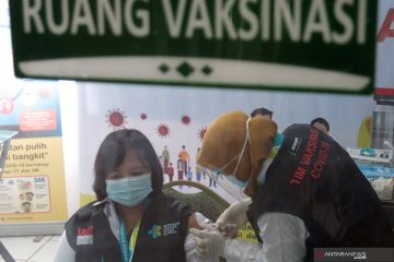 Petugas medis menyuntikan vaksin COVID-19 kepada tenaga kesehatan di Puskesmas Tanah Sareal, Kota Bogor, Jawa Barat, Kamis (28/1/2021). Vaksinasi tahap kedua bagi tenaga kesehatan diberikan untuk pembentukan antibodi yang utuh serta sebagai booster agar antibodi di dalam tubuh terbentuk dan maksimal melawan virus COVID-19. ANTARA FOTO/Yulius Satria Wijaya/foc.