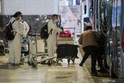 Sejumlah warga negara asing (WNA) dengan menggunakan baju hazmat memasukkan barang bawaannya ke dalam bus saat hendak menuju tempat karantina setibanya di Bandara Internasional Soekarno Hatta, Tangerang, Banten, Sabtu (30/1/2021). Pemerintah Indonesia kembali memperpanjang larangan masuknya WNA hingga 8 Februari 2021 kecuali WNA pemegang visa diplomatik, visa dinas kunjungan resmi pejabat asing setingkat menteri ke atas, izin tinggal diplomatik dan izin tinggal dinas serta Kartu Izin Tinggal Terbatas (KITAS) dan Kartu Izin Tinggal Tetap (KITAP). ANTARA FOTO/Fauzan/wsj.