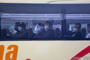 Sejumlah warga negara asing (WNA) duduk di dalam bus yang akan menuju tempat karantina setibanya di Bandara Internasional Soekarno Hatta, Tangerang, Banten, Sabtu (30/1/2021). Pemerintah Indonesia kembali memperpanjang larangan masuknya WNA hingga 8 Februari 2021 kecuali WNA pemegang visa diplomatik, visa dinas kunjungan resmi pejabat asing setingkat menteri ke atas, izin tinggal diplomatik dan izin tinggal dinas serta Kartu Izin Tinggal Terbatas (KITAS) dan Kartu Izin Tinggal Tetap (KITAP). ANTARA FOTO/Fauzan/wsj.