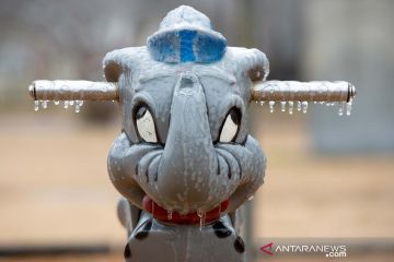 Es menutupi peralatan taman bermain selama cuaca dingin yang ekstrem di Cleveland, Mississippi, AS, (11/2/2021). ANTARA FOTO/REUTERS / Rory Doyle/aww.
