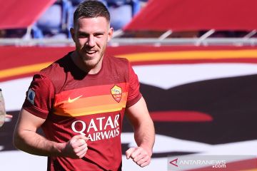 Pemain AS Roma Jordan Veretout merayakan gol kedua saat laga Liga Italia melawan Udinese di Stadio Olimpico, Rome, Italia, Minggu (14/2/2021). AS Roma berhasil mengalahkan Udinese dengan skor 3-0. ANTARA FOTO/REUTERS/Alberto Lingria/aww.