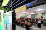 Guru memberikan materi pelajaran kepada siswa di dalam kelas sambil mengenakan masker saat hari pertama dimulainya kembali belajar tatap muka di SMAN 5 Kota Jambi, Jambi, Rabu (17/2/2021). Sebanyak 341 SMA/SMK dan sekolah luar biasa (SLB) yang telah dinyatakan lulus verifikasi protokol kesehatan mulai melakukan belajar tatap muka pada hari ini (17/2). ANTARA FOTO/Wahdi Septiawan/rwa.