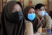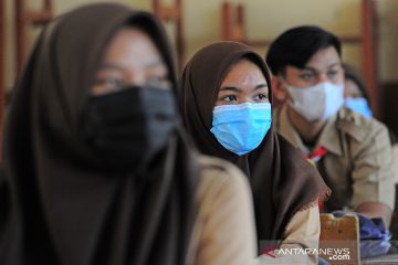 Siswa mendengarkan materi pelajaran sambil mengenakan masker saat hari pertama dimulainya kembali belajar tatap muka di SMAN 5 Kota Jambi, Jambi, Rabu (17/2/2021). Sebanyak 341 SMA/SMK dan sekolah luar biasa (SLB) yang telah dinyatakan lulus verifikasi protokol kesehatan mulai melakukan belajar tatap muka pada hari ini (17/2). ANTARA FOTO/Wahdi Septiawan/rwa.
