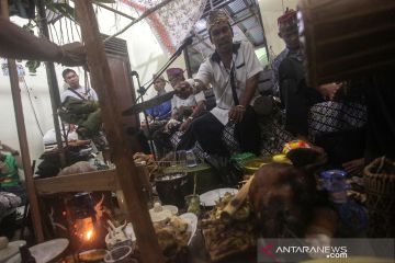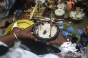 Sejumlah Basir (pendeta adat) melakukan prosesi ritual adat Tantulak Ambun Rutas Matei, di Palangkaraya, Kalimantan Tengah, Rabu (17/2/2021) malam. Ritual tersebut dilakukan oleh masyarakat adat Dayak Ngaju Kaharingan Kalteng bertujuan untuk mengantarkan arwah yang sudah meninggal ke tempat penantian sementara di Lewu Bukit Nalian Lanting (dekat dengan surga) sekaligus membersihkan keluarga duka dari penyakit serta terhindar dari mara bahaya. ANTARA FOTO/Makna Zaezar/pras.