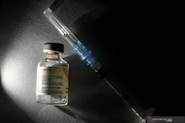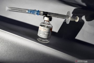Sebuah vaksin COVID-19 Sinovac beserta jarum suntik terpajang di kawasan Masjid Istiqlal saat vaksinasi di Jakarta, Selasa (23/2/2021). Menteri Badan Usaha Milik Negara (BUMN) Erick Thohir mengatakan pemerintah tengah mengupayakan pengadaan 20 juta dosis vaksin COVID-19 kategori mandiri, di mana vaksin tersebut akan diberikan pengusaha bagi para karyawan di perusahaannya masing-masing. ANTARA FOTO/Muhammad Adimaja/hp.