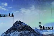 Sejumlah pekerja memperbaiki layar monitor di salah satu gedung bertingkat di Jakarta, Selasa (23/2/2021). Pemerintah Provinsi DKI Jakarta memperpanjang masa pemberlakuan pembatasan kegiatan masyarakat (PPKM) berskala mikro di Ibu Kota pada 23 Februari hingga 8 Maret 2021. ANTARA FOTO/Sigid Kurniawan/hp.