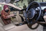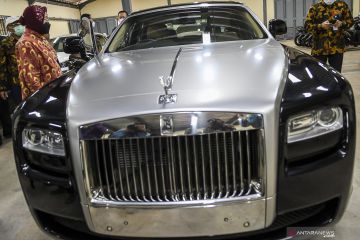 Menteri Sosial Tri Rismaharini mengamati bagian dalam mobil Rolls Royce Tipe Ghost yang merupakan barang undian di salah satu gudang Kemensos di Jakarta, Selasa (23/2/2021). Kemensos akan melelang barang hasil undian yang tak tertebak dan undian yang tak ditebus berupa sembilan mobil, 27 sepeda motor hingga 50 batang emas yang kemudian hasil lelang akan digunakan kepentingan dana bencana. ANTARA FOTO/M Risyal Hidayat/hp.