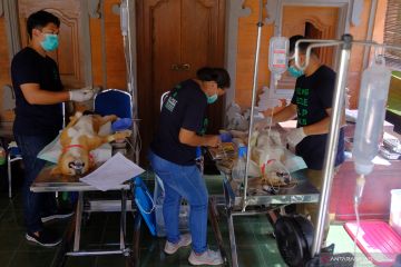 Dokter hewan melakukan sterilisasi kepada sejumlah anjing lokal dalam rangkaian memperingati HUT ke-233 Kota Denpasar di Dinas Pertanian Kota Denpasar, Bali, Kamis (25/2/2021). Pelayanan vaksinasi, sterilisasi dan kastrasi secara gratis tersebut diprioritaskan bagi anjing lokal peliharaan untuk mempertahankan status daerah terbebas dari penyakit rabies serta mencegah penularan rabies pada masa pandemi COVID-19. ANTARA FOTO/Nyoman Hendra Wibowo/wsj.