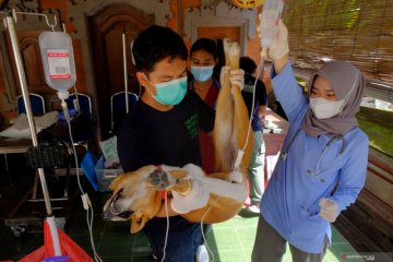 Dokter hewan menyuntikkan obat bius kepada seekor anjing saat sterilisasi dalam rangkaian memperingati HUT ke-233 Kota Denpasar di Dinas Pertanian Kota Denpasar, Bali, Kamis (25/2/2021). Pelayanan vaksinasi, sterilisasi dan kastrasi secara gratis tersebut diprioritaskan bagi anjing lokal peliharaan untuk mempertahankan status daerah terbebas dari penyakit rabies serta mencegah penularan rabies pada masa pandemi COVID-19. ANTARA FOTO/Nyoman Hendra Wibowo/wsj.