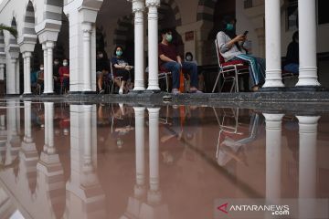 Pedagang mengantre untuk mengikuti vaksinasi COVID-19 di Blok A Pasar Tanah Abang Jakarta, Kamis (25/2/2021). Kementerian Kesehatan memperpanjang periode vaksinasi COVID-19 pedagang di Pasar Tanah Abang hingga 2 Maret 2021 karena masih tingginya animo pedagang yang ingin divaksin mencapai 21.250 orang. ANTARA FOTO/Wahyu Putro A/aww.