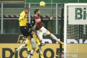 Pemain Udinese Rodrigo Becao (kiri) mencetak gol ke gawang AC Milan dalam laga lanjutan Liga Italia di San Siro, Milan, Italia, Rabu (3/3/2021). Milan mendapat penalti pada menit 90+7 dan selamat dari kekalahan setelah tertinggal 0-1. ANTARA FOTO/REUTERS/Alessandro Garofalo/foc.