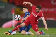 Pesepak bola Liverpool James Milner (kanan) berebut bola dengan pesepak bola Chelsea Mateo Kovacic (kiri) dalam laga lanjutan Liga Inggris, di Stadion Anfield, Liverpool, Inggris, Kamis (4/3/2021). Chelsea berhasil mengalahkan Liverpool 1-0 lewat gol yang dicetak Mason Mount pada menit ke-42. ANTARA FOTO/Pool via Reuters/Laurence Griffiths /hp.
