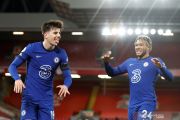 Pesepak bola Chelsea Mason Mount (kiri) melakukan selebrasi bersama rekannya Reece James seteah berhasil mencetak gol ke gawang Liverpool dalam laga lanjutan Liga Inggris, di Stadion Anfield, Liverpool, Inggris, Kamis (4/3/2021). Chelsea berhasil mengalahkan Liverpool 1-0 lewat gol yang dicetak Mason Mount pada menit ke-42. ANTARA FOTO/Pool via Reuters-/Phil Noble/hp.