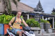 Seorang Warga negara asing (WNA) tanpa mengenakan masker berkendara di kawasan Kuta Utara, Badung, Bali, Rabu (10/3/2021). Pergub Bali Nomor 10 tahun 2021 memperketat sanksi bagi WNA pelanggar protokol kesehatan COVID-19 di mana dalam peraturan sebelumnya sanksi berupa denda administratif sebesar Rp100 ribu menjadi sanksi denda administratif sebesar satu juta rupiah untuk pelanggaran pertama dan sanksi deportasi bagi WNA untuk pelanggaran kedua. ANTARA FOTO/Fikri Yusuf/wsj.